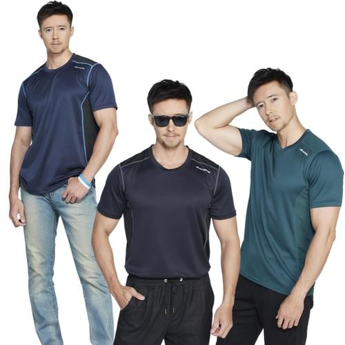 男款超輕彈涼感透心多樣拼接圓領短袖上衣(DMT2402 三色可選)
