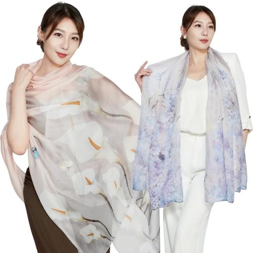千島雲錦 絲語花影名媛奢華蠶絲披巾(DS2501 兩色可選)