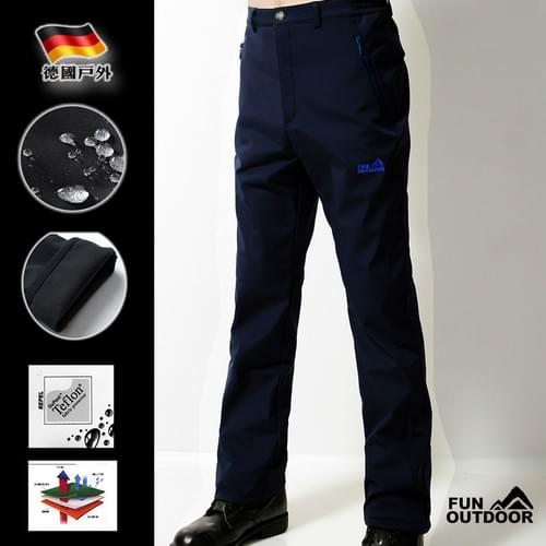 男款抓絨防風杜邦潑水三層貼合彈性輕量軟殼褲保暖褲(HMP010 海軍藍)