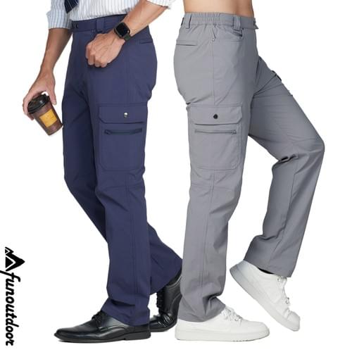 男薄款雙鉚釘多拉鍊口袋防潑水彈性防曬長褲 (HPM017 丈青/銀河灰 兩色可選)