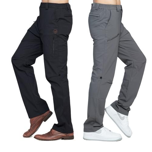 男格紋薄款耐磨多口袋防潑水彈性防曬反折長褲 ( TGPM2201 霧灰/黑 )