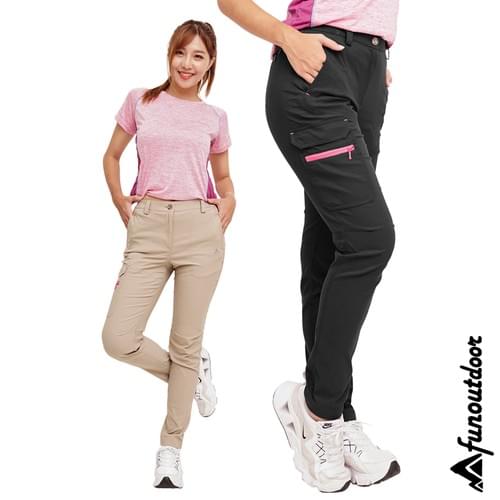 女款多口袋休閒褲防潑水超彈性輕薄快乾UPF50+防曬長褲(HPL001 卡其/炭灰)